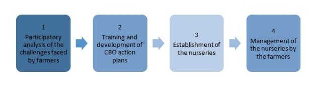 The capitalisation on nurseries within the RECASE project highlighted the main steps involved in setting up farmer-managed nurseries :