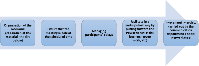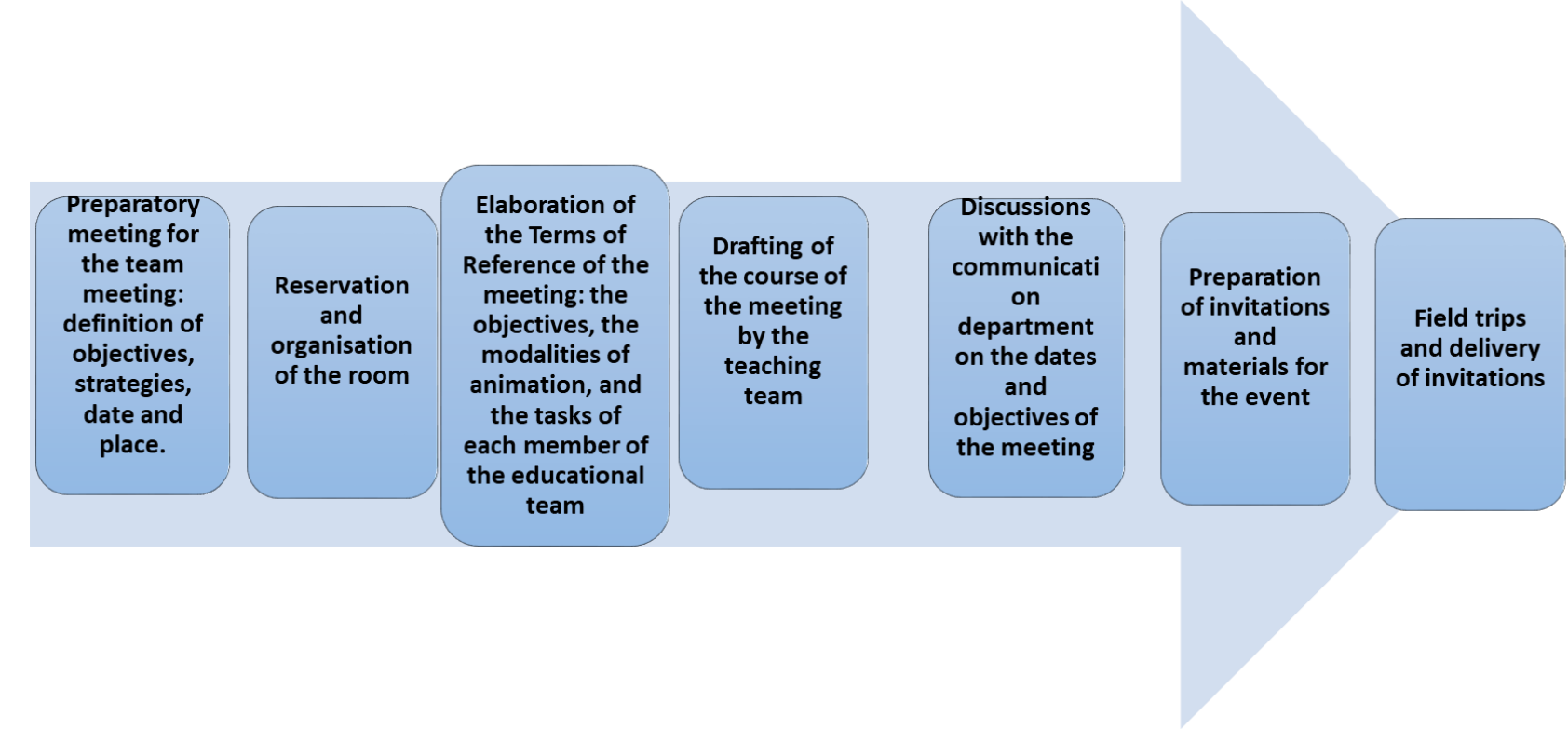 In order to carry out the process linked to the preparation of joint meetings in a perspective of emancipation of the learners, three main stages have been identified :